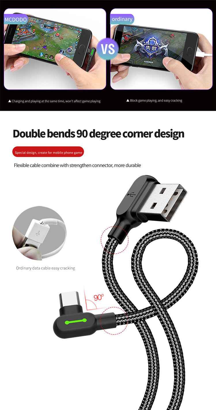 • Mcdodo Right Angle USB-A to USB-C Cable - Button Series